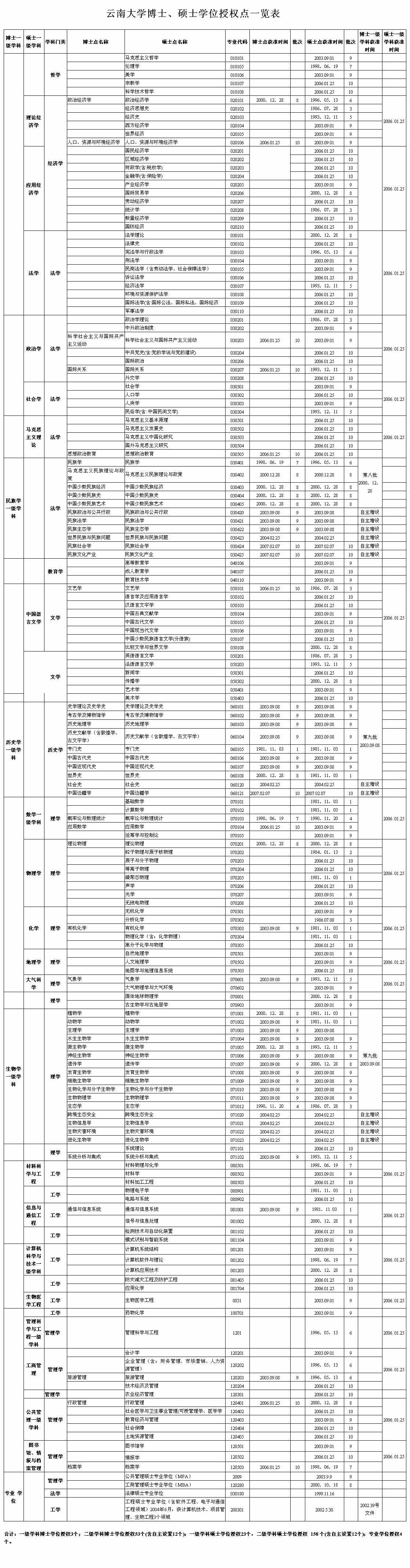 [2010考研] 云南大学博士、硕士学位授权点一览表 |