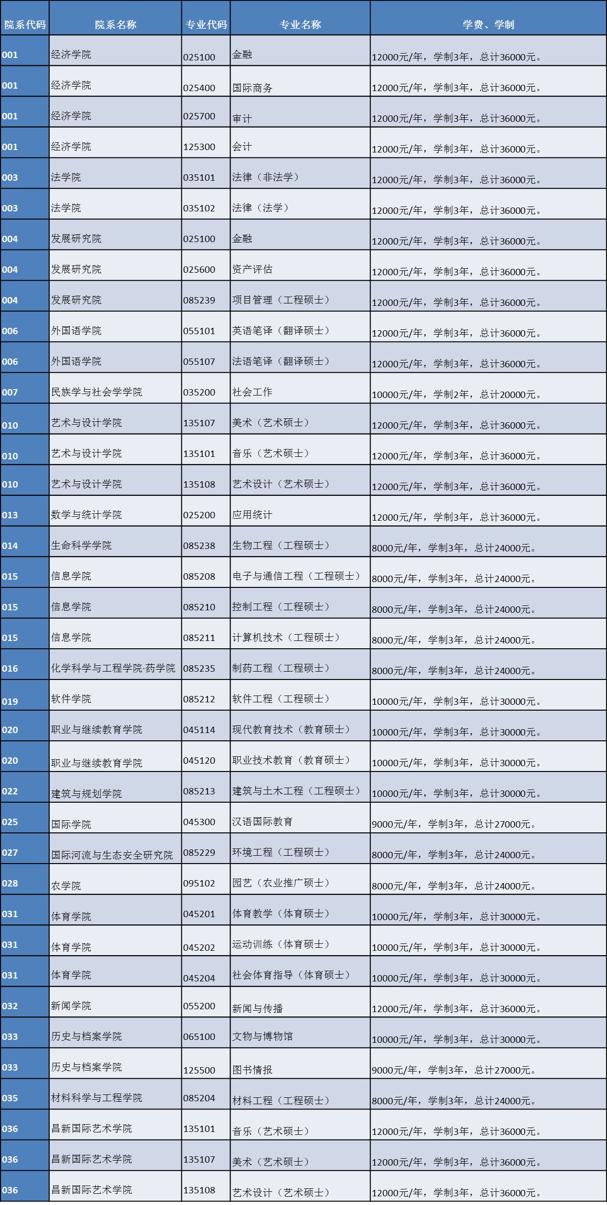 3. 非全日制硕士研究生学费见下表,具体以省级价格主管部门核定为准: